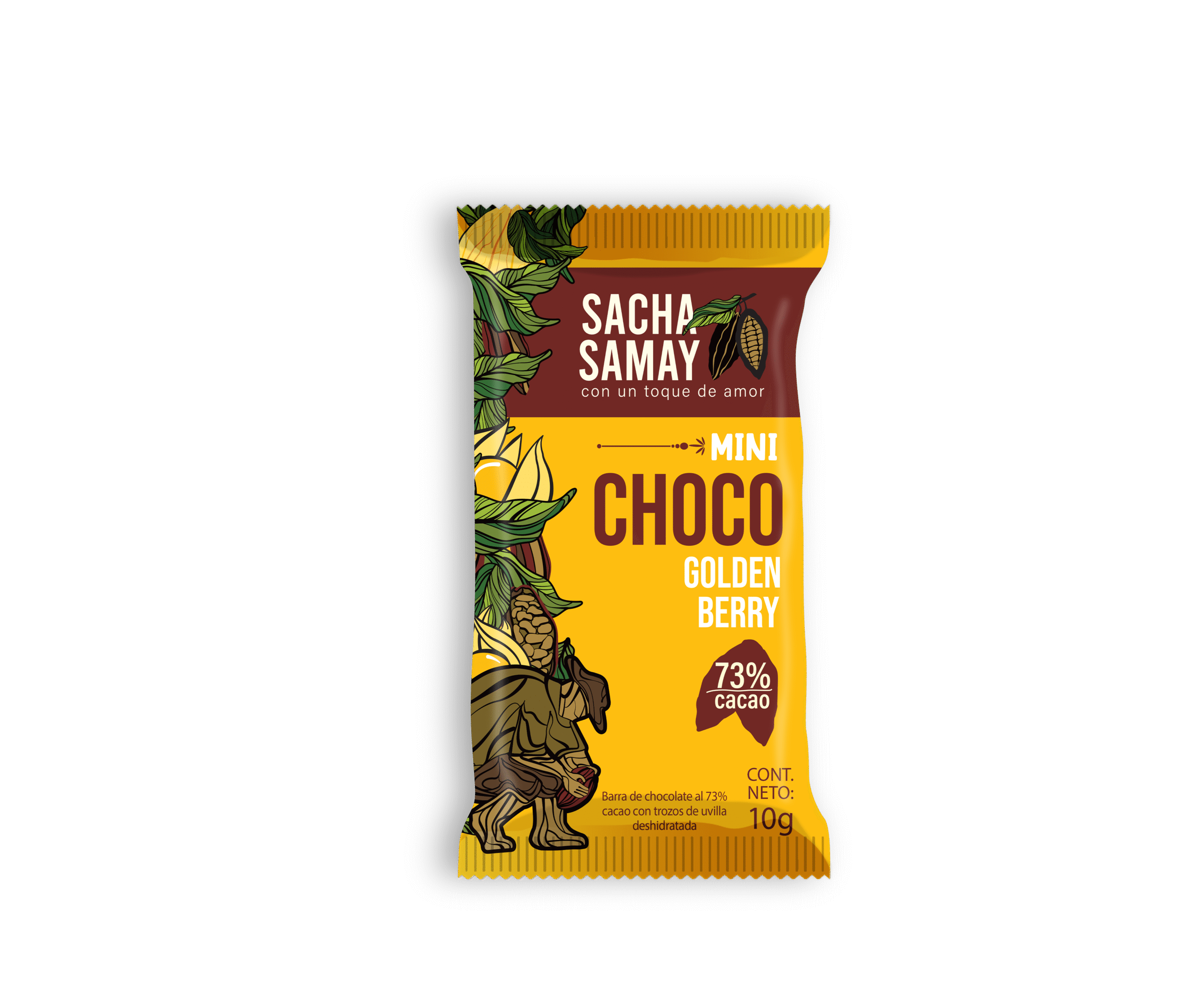 Chocolates elaborados desde el alma de la selva con pasión y cuidado. Esta barra mezcla cacao 73% con trozos de uvilla deshidratada, generando un contraste de notas dulces y ácidas que despiertan los sentidos. Elaborada con cacao proveniente de pequeños agricultores del Salto del Tigre, refleja calidad, sostenibilidad y autenticidad en cada bocado. Disfruta la intensidad y frescura de la fruta ecuatoriana combinada con nuestro cacao premium. Desde el alma de la selva con un toque de amor.